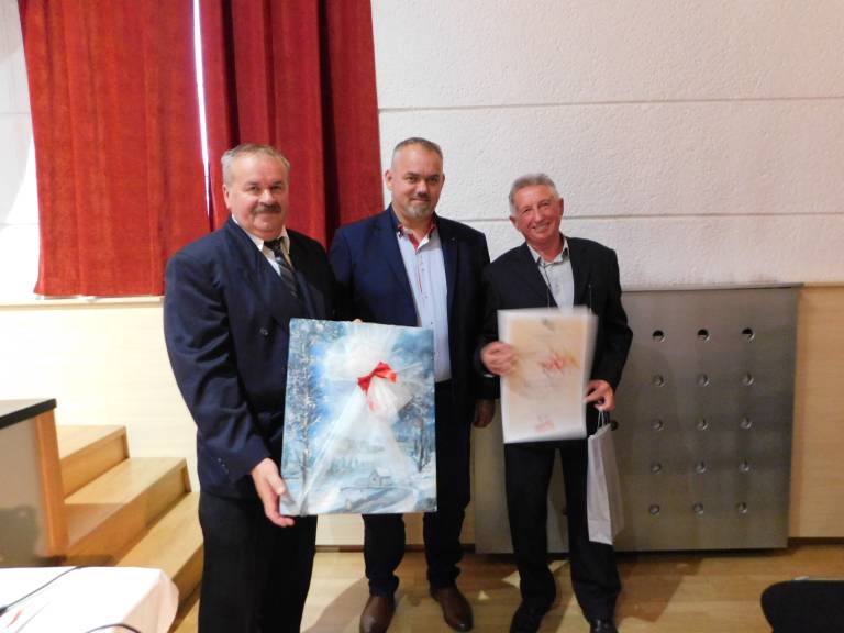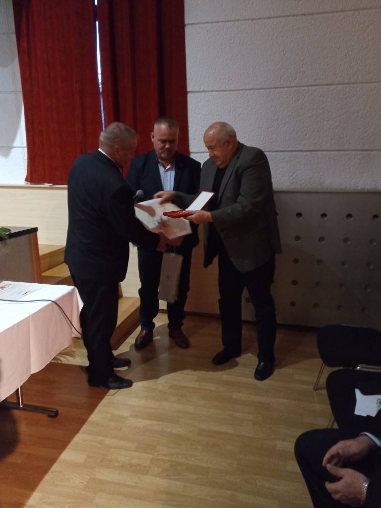 Predstavnik Pokrajinske zveze društev upokojencev Murska Sobota Aleksander Marič je društvu ob jubilejni 30-letnici delovanja podelil malo plaketo Zveze društev upokojencev Slovenije.