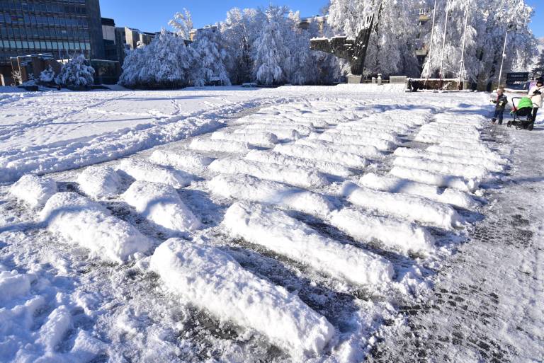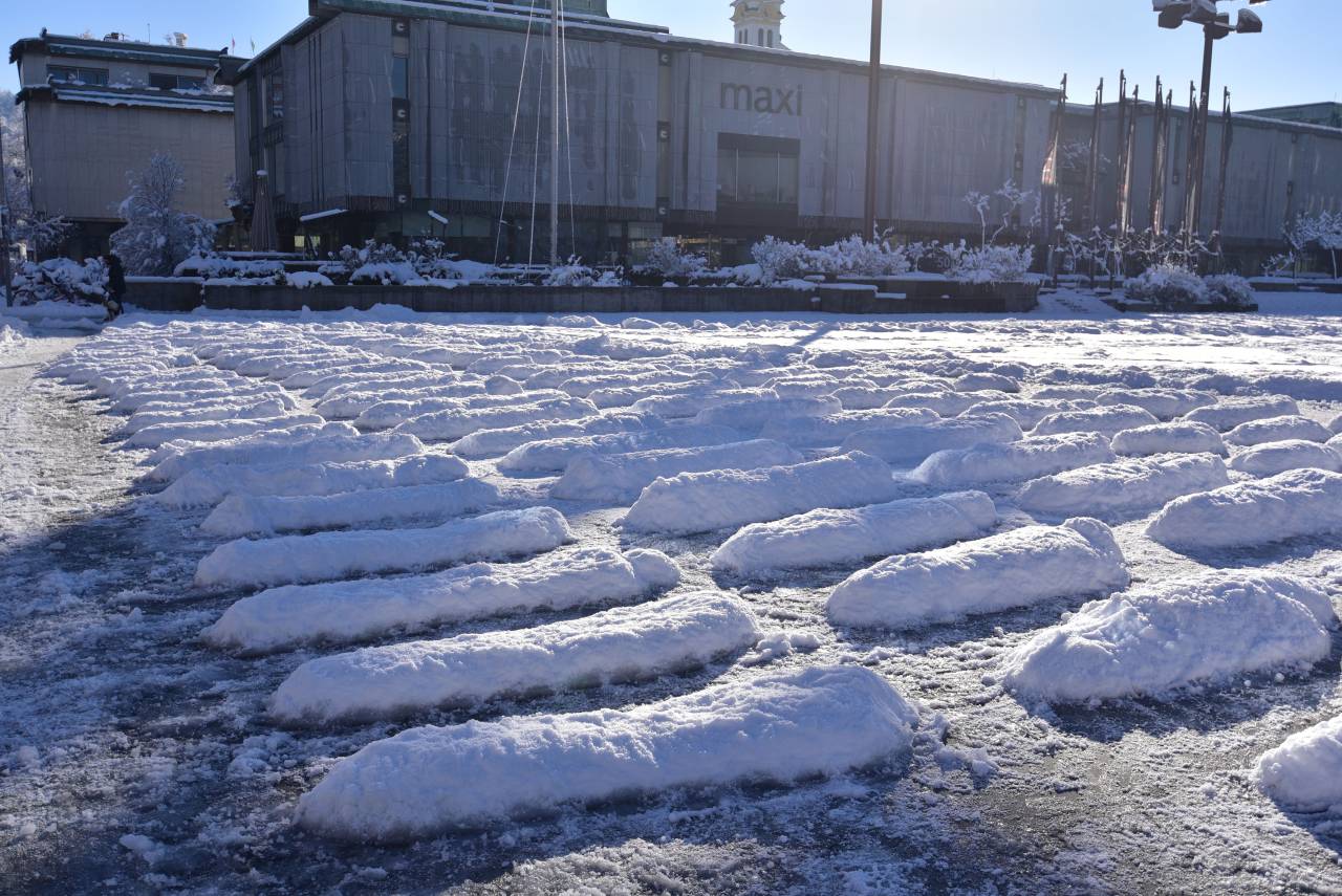 Na ljubljanskem Trgu republike pred poslopjem državnega zbora so po poročanju N1 umetniki iz različnih kolektivov v petek zvečer iz snega ustvarili instalacijo, ki opozarja na v Gazi ubite nedolžne palestinske žrtve v vojni med Hamasom in Izraelom.