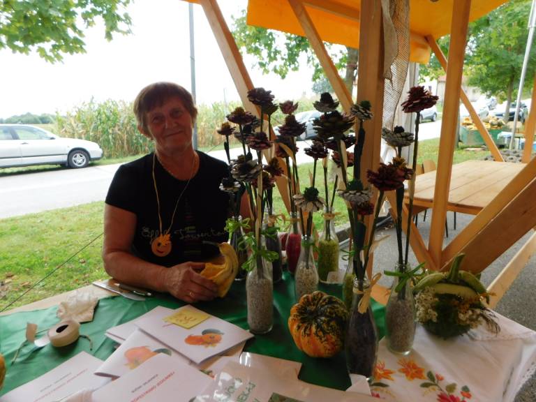 In sicer je pred vaško-gasilskim domom v Bodoncih postavila maketo dedka in babice, ki je narejena iz buč in koruze ter jo poimenovala »Bučnika«.
