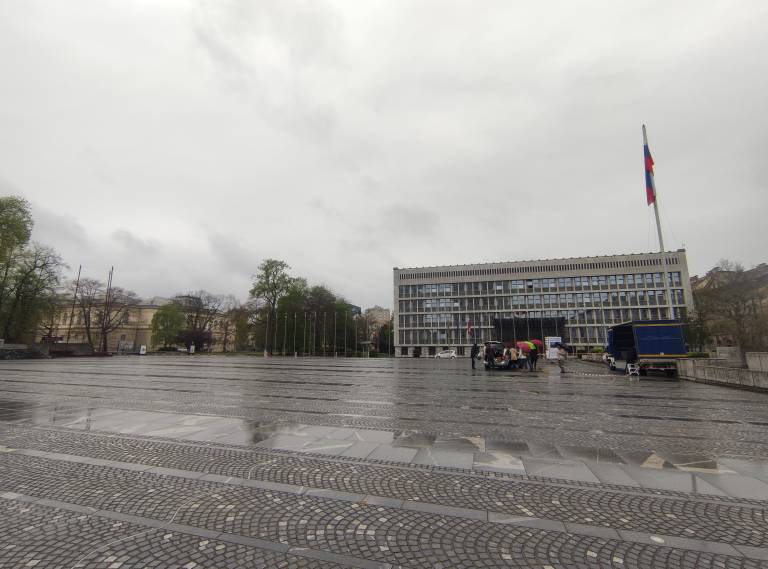 Preverite, kaj pomenijo stebri, ki so skoraj čez noč zrastli na Trgu republike. So ti namenjeni nošenju zastav ali pa skritju pogledov na protestnike.