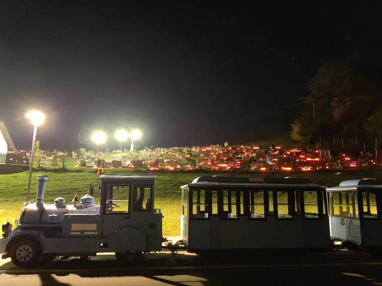 V večernih urah pokopališča zažarijo v toplih tonih rdečih lučk in cvetličnih barv.