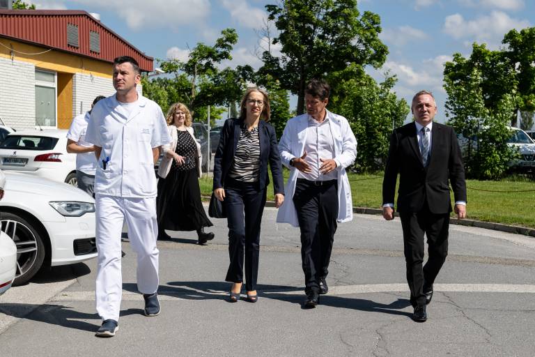 Predsednik vlade Robert Golob in ministrica za zdravje Valentina Prevolnik Rupel sta danes obiskala Splošno bolnišnico Murska Sobota, kjer sta se sestala z vodstvom in si ogledala nov prizidek negovalnega oddelka.