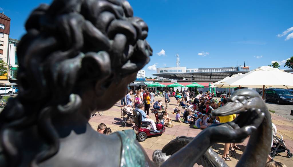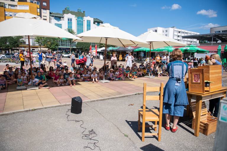 V soboto dopoldne na Trgu kulture julija in avgusta potekajo predstave za najmlajše. Danes sta Irena Rajh in Katja Povše za najmlajše pripravili predstavo z naslovom »Zlatolaska in trije medvedi«.