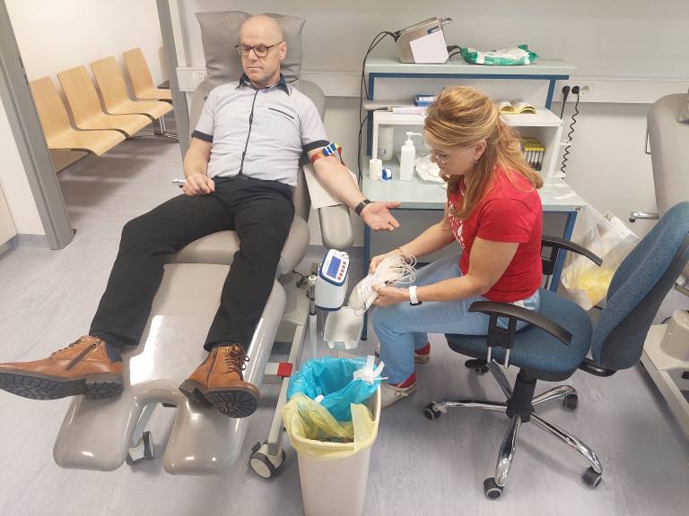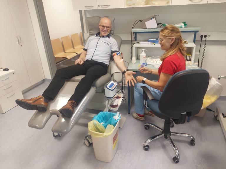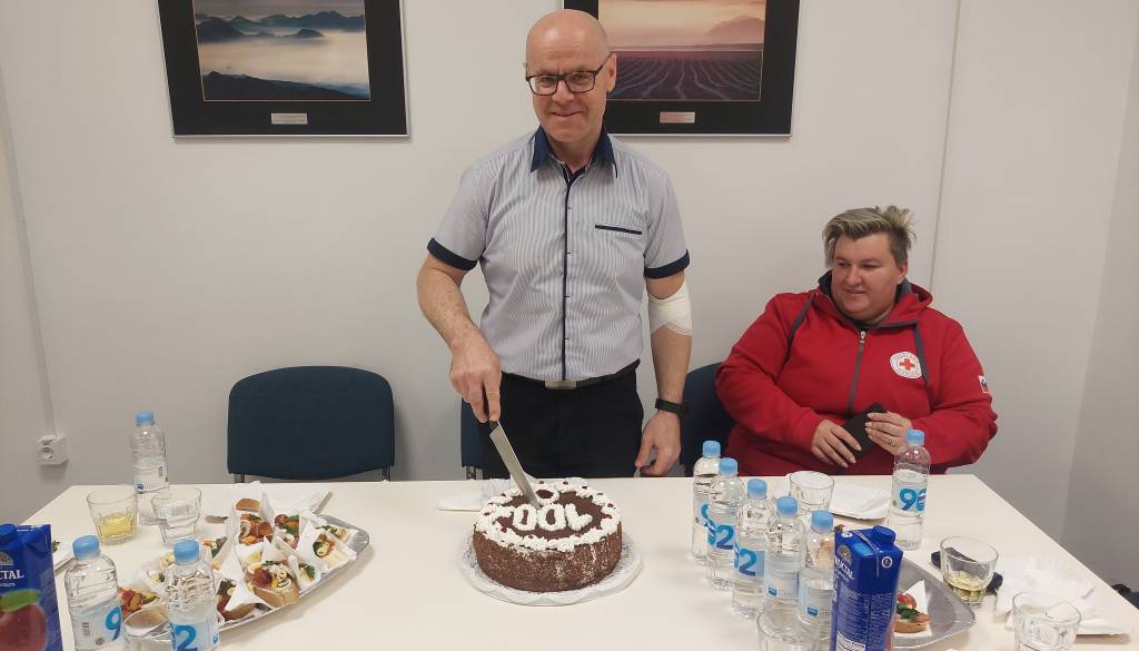 Danes, ob 10.30, je v Enoti za transfuzijsko dejavnost Murska Sobota, ki deluje pod okriljem Centra za transfuzijsko medicino Univerzitetnega kliničnega centra Maribor, krvodajalec Branko Raj svojo kri daroval že stotič.