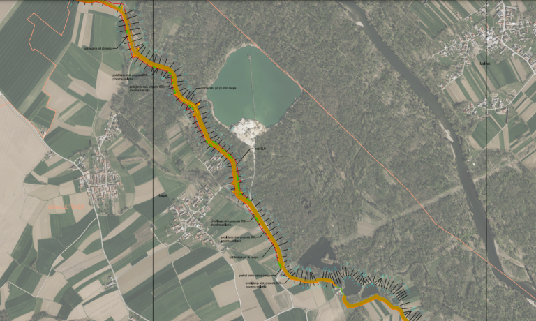 Kakšna je trasa predvidenega visokovodnega nasipa ob reki Muri?