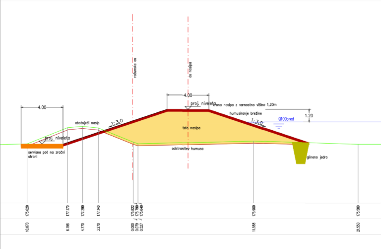Predmet dograditve in nadvišanje visokovodnega nasipa v predmetnem načrtu je od železniške proge Murska Sobota – Ljutomer do občinske meje z občino Razkrižje.