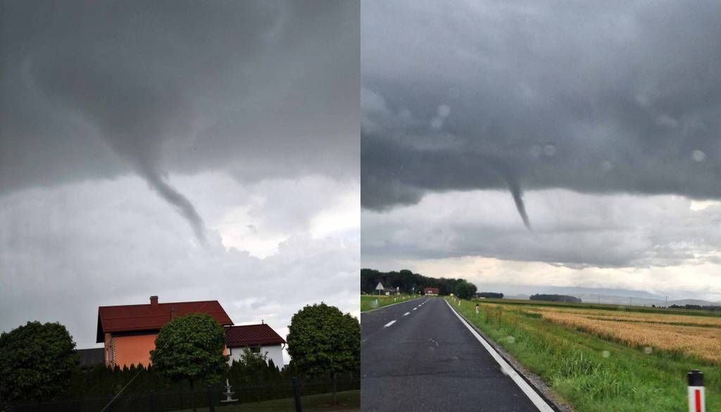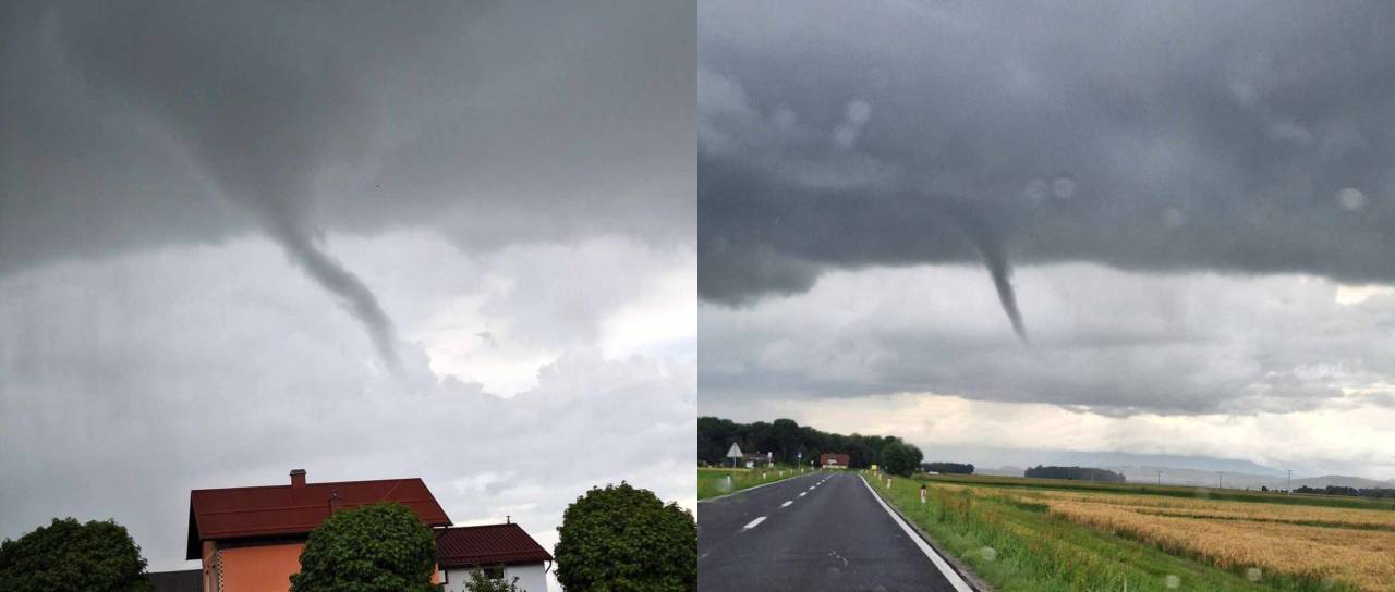 Na Štajerskem, v okolici Ptuja, so zabeležili zanimiv pojav, ki po obliki spominja na tornado. Poglejte neverjetni fotografiji.