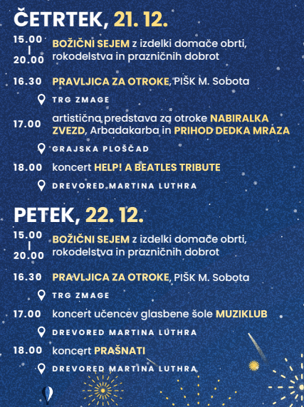 V četrtek in petek, 21. in 22. decembra, bo od 15. do 20. ure na tej lokaciji tudi božični sejem.