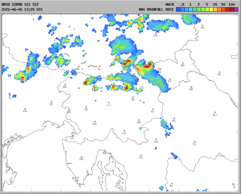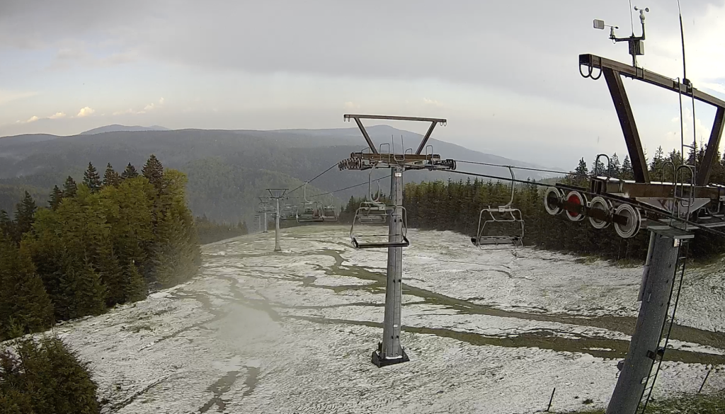 Opozorilo Agencije Republike Slovenije za okolje se je žal izkazalo za točno. Nad Pohorjem se je namreč razvila močna celica, katere center je bil nad Roglo, kjer je padala toča.