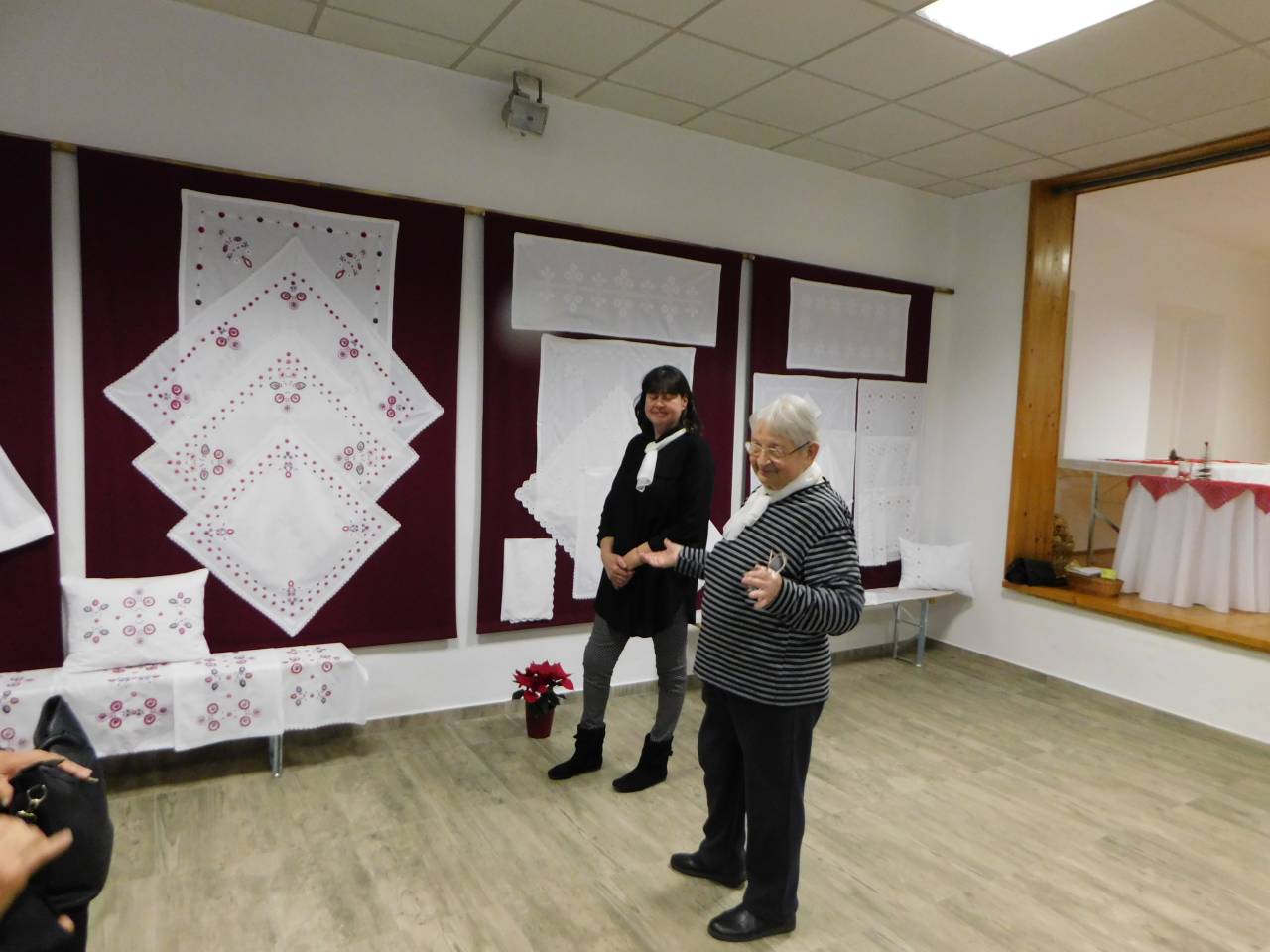 Članice krožka, ki kvačkajo pa so razstavo obogatile z različnimi vzorci za različne priložnosti. Razstavljena je bila tudi narodna noša Hetés dvojezične vasi Genterovci, ki predstavlja moško in žensko narodno nošo.
