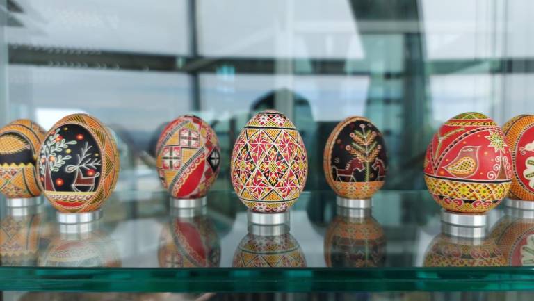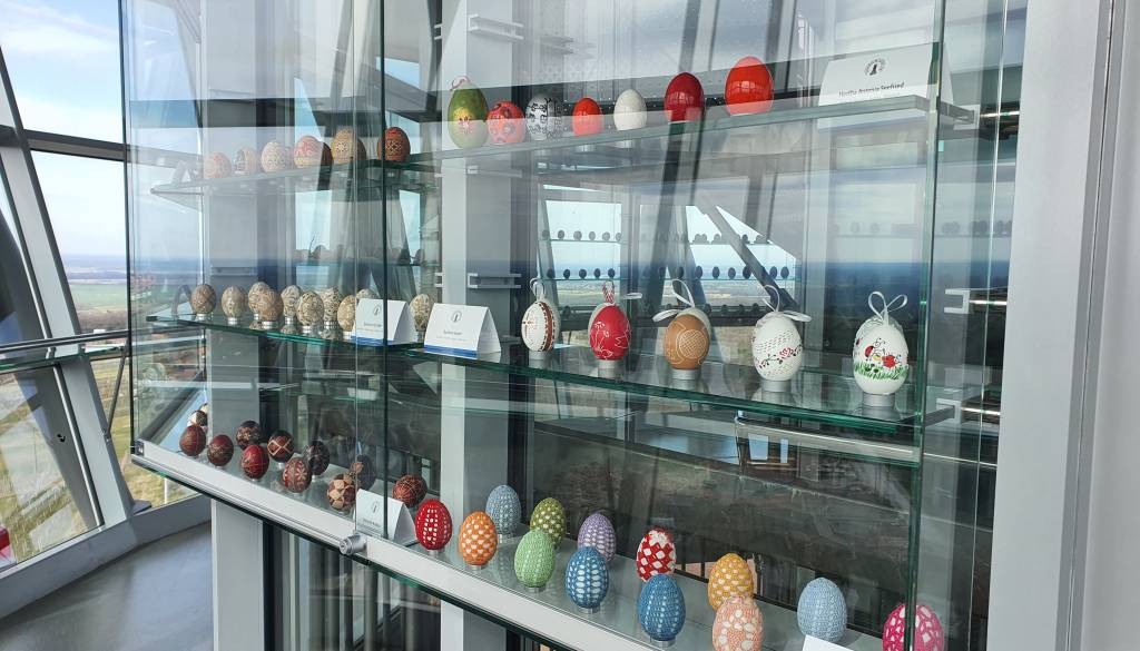V razglednem stolpu Vinarium je od sobote, 18. marca 2023 naprej na voljo razstava z naslovom Velikonočni pirhi štirih dežel.