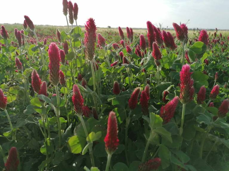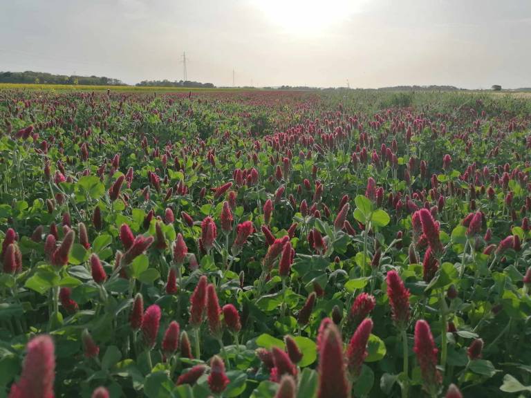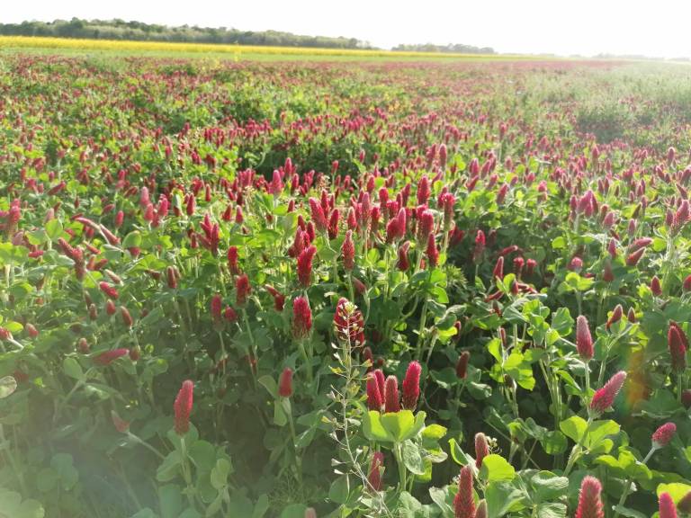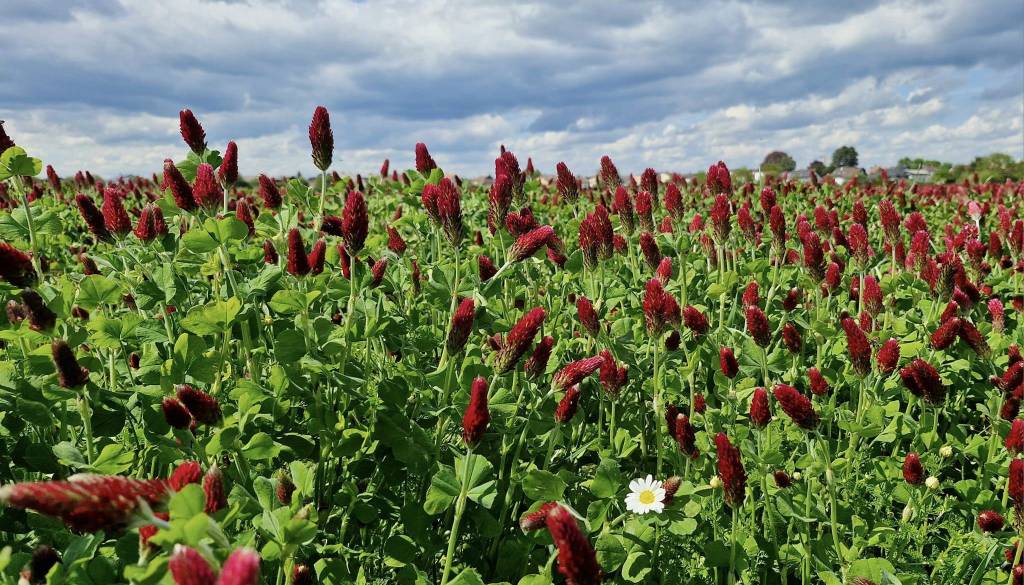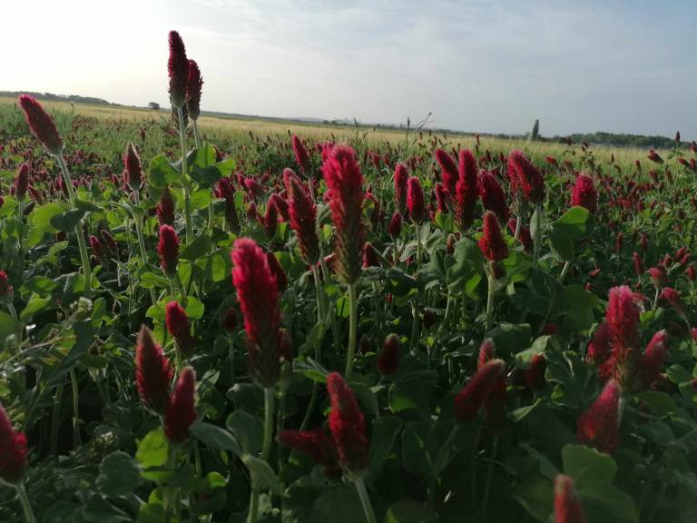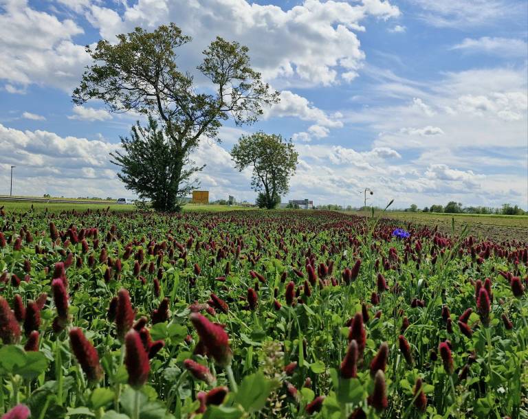 Na poljih lahko občudujemo rdečo deteljo.