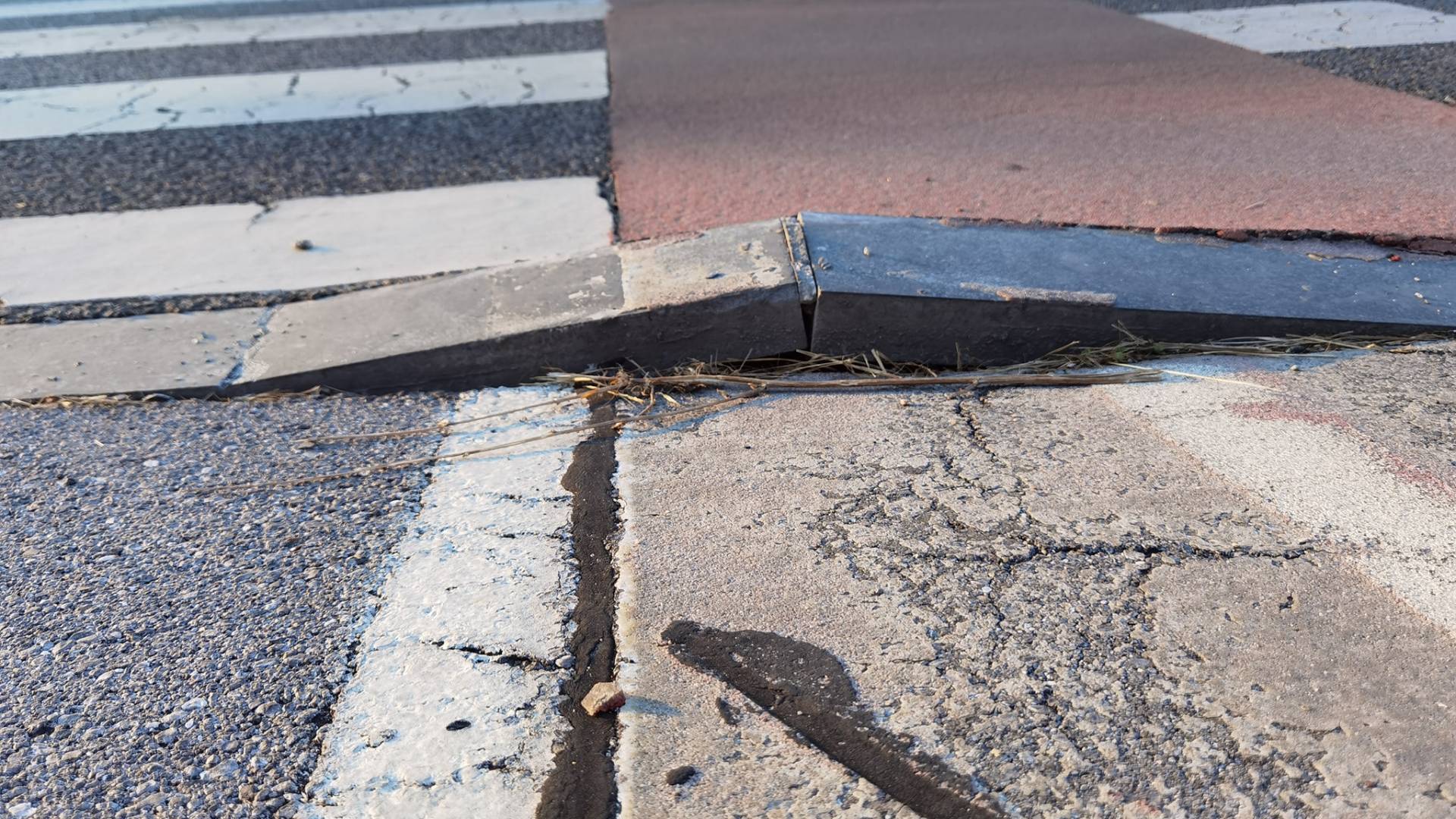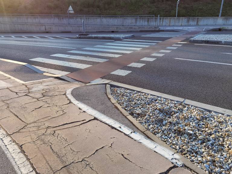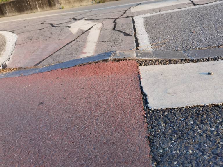 »Na sredini prehoda kolesarske in prehoda za pešce je večja izboklina, ki je nastala po vsej verjetnosti od vročine, upam da bo pristojna služba opazila poškodbo na prehodu za pešce-kolesarje in obvestila pristojne da zadevo sanirajo, da ne pride do kaj še hujšega.«
