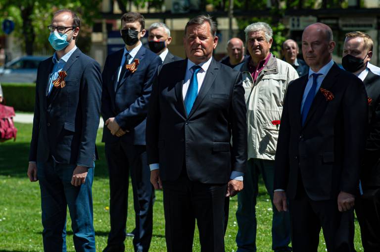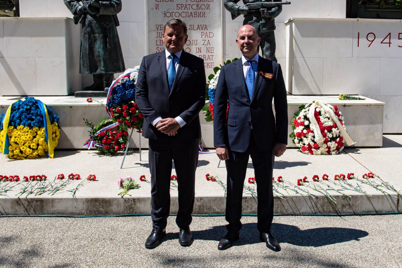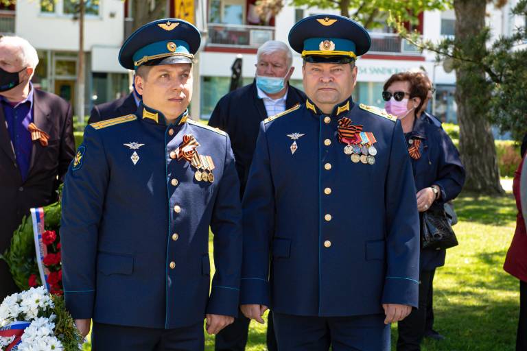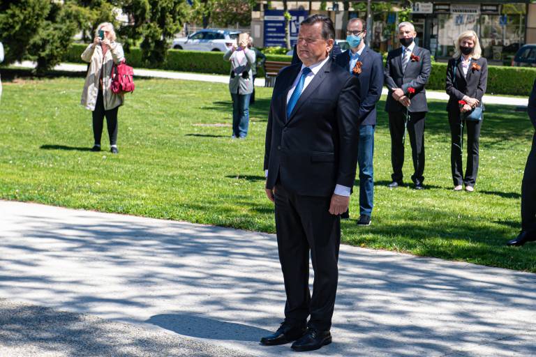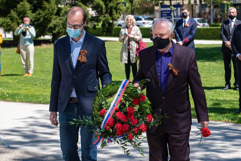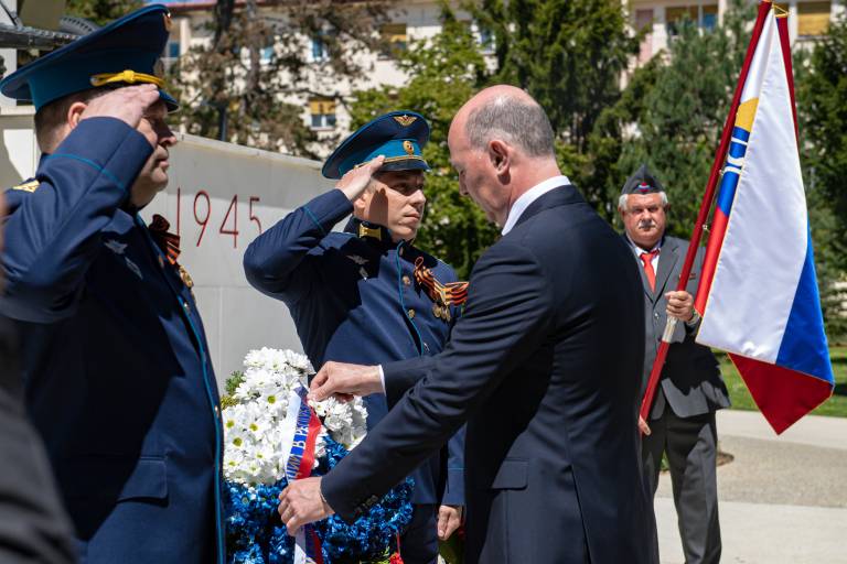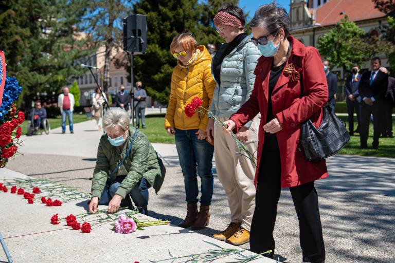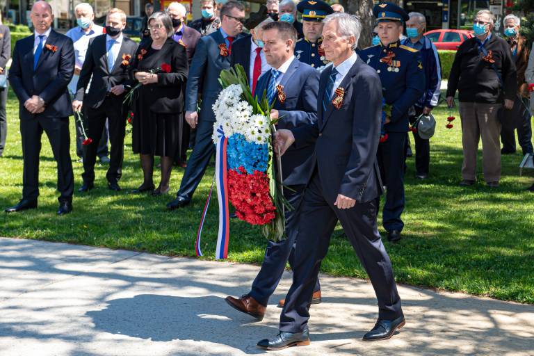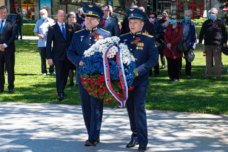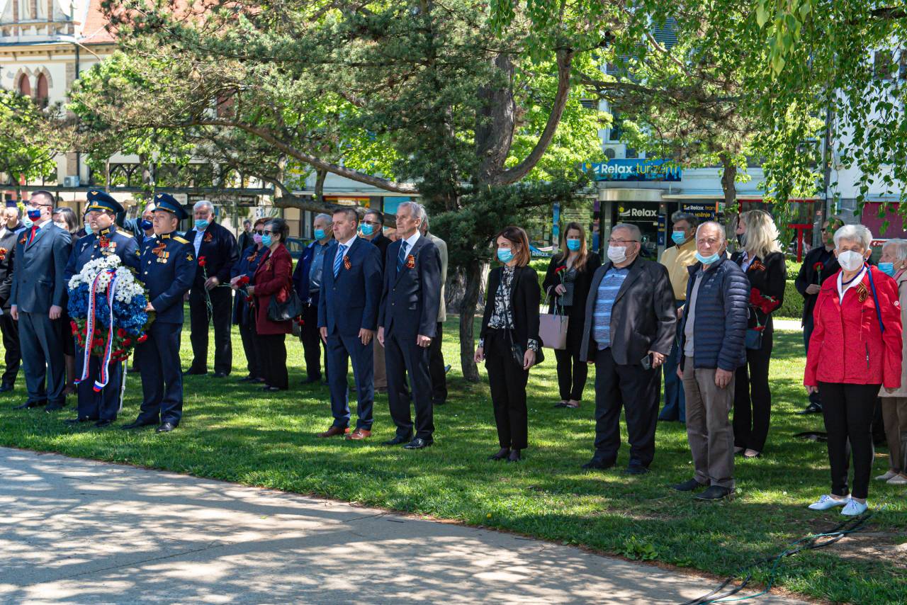 Razmeram primerno so se padlim osvoboditeljem s polaganjem vencev pred spomenikom zmage poklonili soboški župan Aleksander Jevšek, veleposlanik Ruske federacije v Sloveniji Timur Eyvazov, predsednik mestne organizacije Zveze borcev za vrednote NOB Murska Sobota Damir Domjan in predsednik društva Slovenija-Rusija Urban Ocvirk.