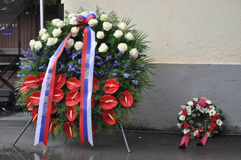 Po slovesnosti so na dvorišču nekdanje ekonomske šole položili venca k spominski plošči