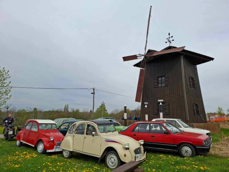 Panoramska vožnja društva Oldtimer Stara Gora po Prlekiji se je ustavila tudi ob zgodovinskem mlinu.
