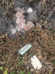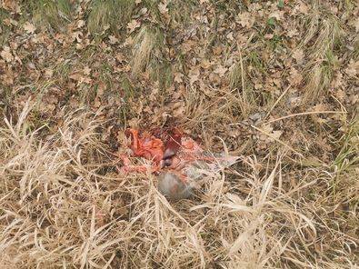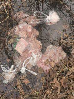 Ob cesti Žižki - Velika Polana pa so v grabi odvrženi celotni kosi mesa in živalska drobovina.