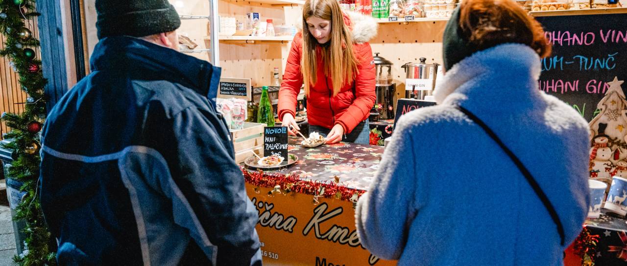 Obiskovalci si lahko privoščijo klasične praznične dobrote – palačinke, lizike, sladkorno peno, pokovko, vaflje, hot dog in podobno. Opazili smo celo food truck mehiške restavracije Cantante Tabor iz Maribora.
