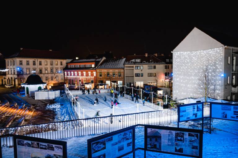 Najbolj živahno vzdušje je na okrašeni mestni tržnici, kjer ponovno stoji drsališče, obkroža pa ga nekaj stojnic.