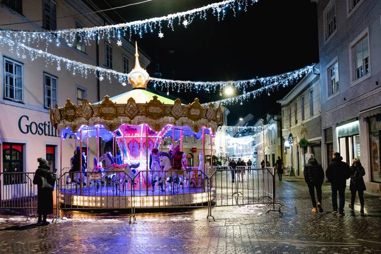 Letos prvič na Miklošičevi ulici stoji tudi praznični vrtiljak, ki je zanimiv predvsem za najmlajše.