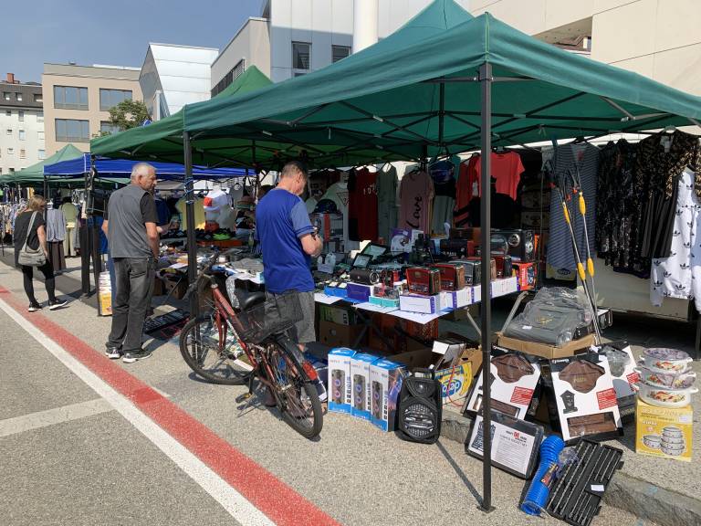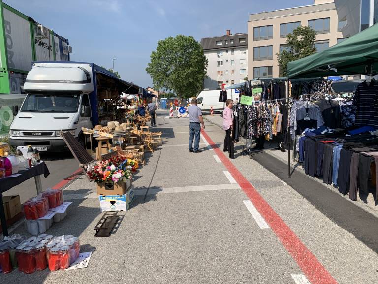 Na današnji prvi ponedeljek v juniju je po dolgem premoru Zvezna ulica spet polna stojnic in obiskovalcev. Poteka namreč tradicionalni kramarski sejem ''Prvi ponedeljek'', ki ponuja vse, od zaves in suhe robe do spodnjega perila, čevljev, suhega sadja in zelenjave.
