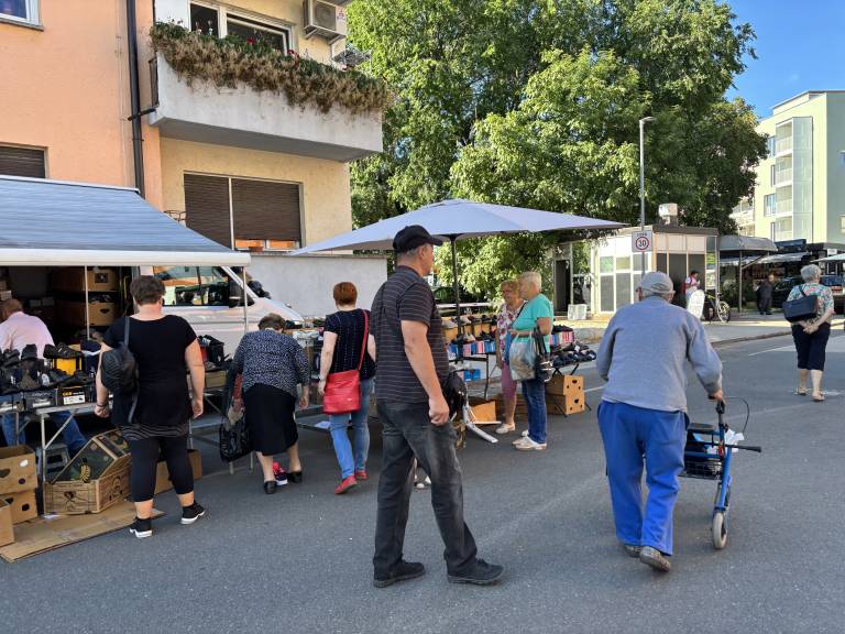 Obiskovalci se poleg nakupovanja zadržujejo tudi ob klepetu in druženju.