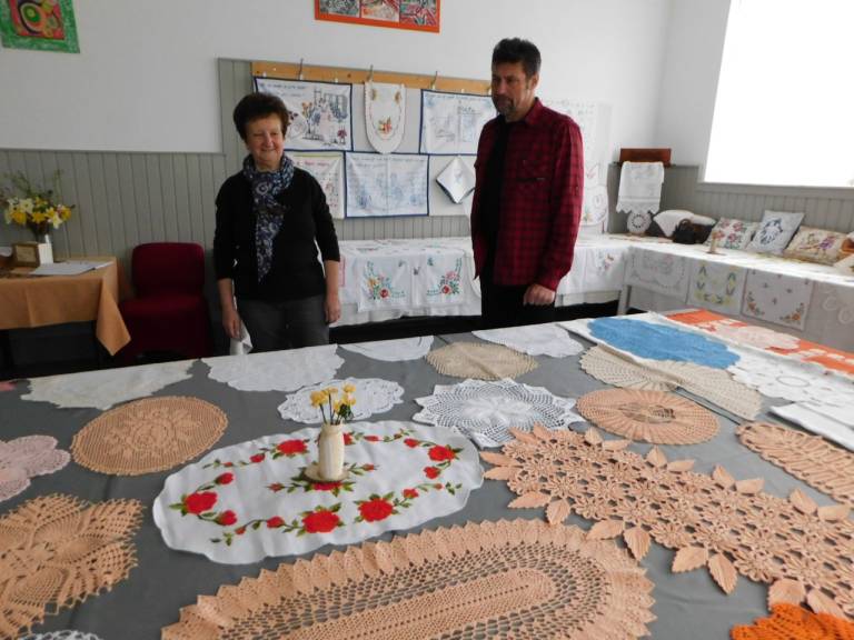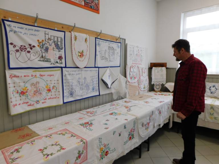 V dvorani vaško-gasilskega doma v Šalamencih smo obiskali razstavo ročnih del rokodelcev.