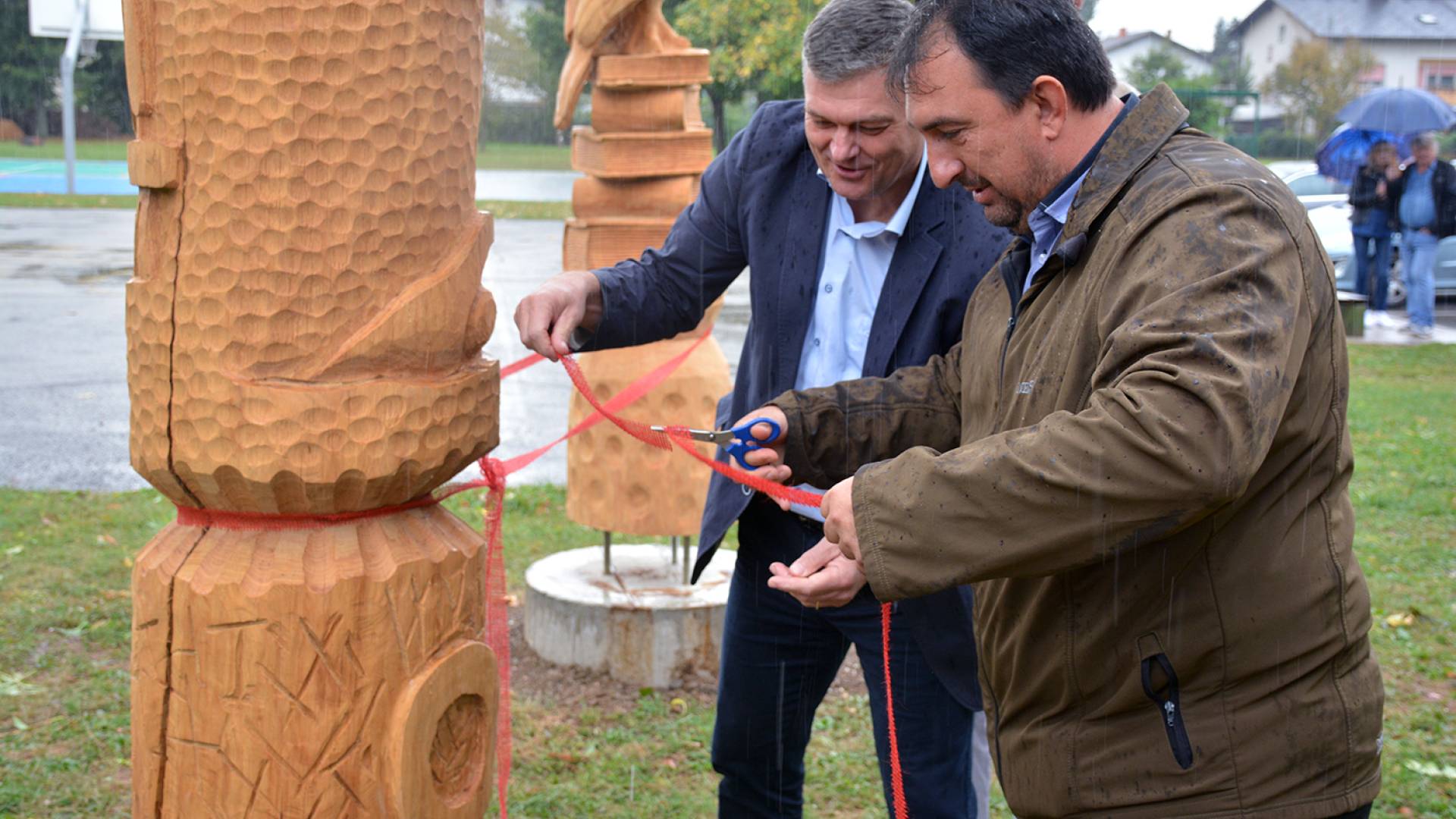 Skupaj s predstavnikom Slovenskih državnih gozdov sta prerezala trak in uradno predala veličastne skulpture namenu občudovanja umetnosti in pričevanja, da se tukaj že stoletje »gradi misleči svet«.
