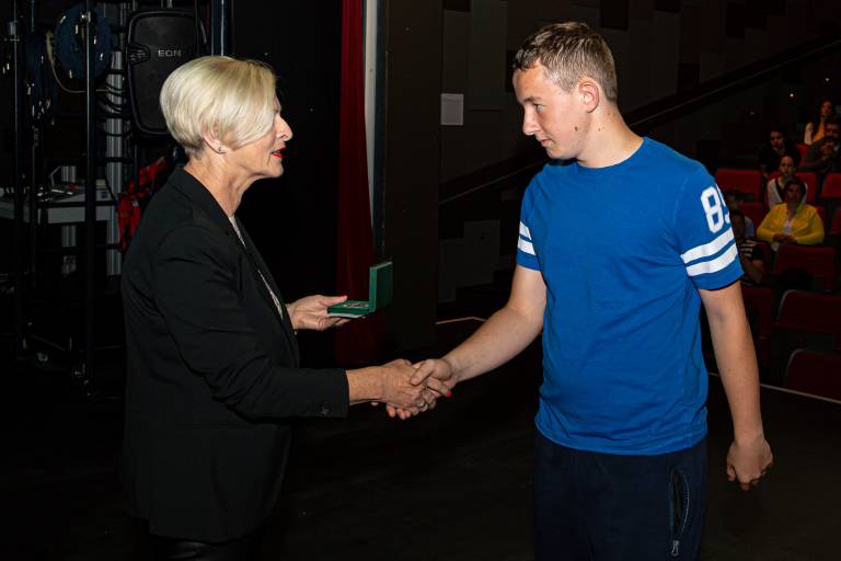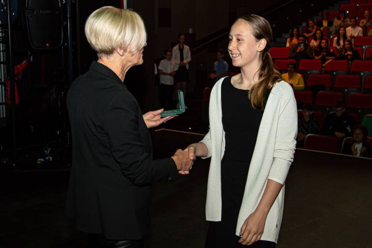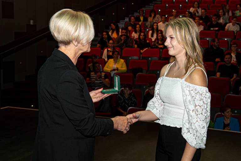 Podžupanja Bernardka Ružič je odličnjakinjam in odličnjakom čestitala za odličen uspeh in jim v imenu podžupana Zorana Hoblaja, ki opravlja začasno funkcijo župana izročila posebno priznanje »županovo petico« ter vstopnico za ogled doživljajskega parka Expano.
