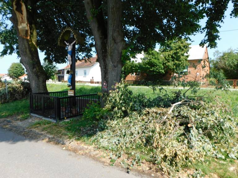 Orkanski veter je za seboj postil razdejanje in pustošenje. Ob omenjenem križu stojita dve mogočni lipi, neurje pa je odtrgalo vejo, ki je padla ob križu na ograjo.