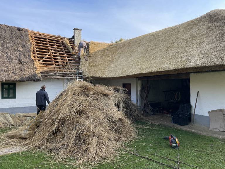 Preden so se lotili prekritja hiše so morali odstraniti prejšnjo dotrajano slamo, hišo pa so slamokrovci potem na novo prekrili.