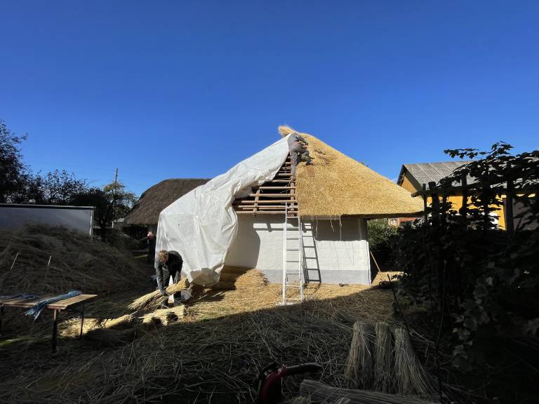 V Lončarski vasi v Filovcih je stara cimprana hiša dobila novo podobo in slamnato streho.