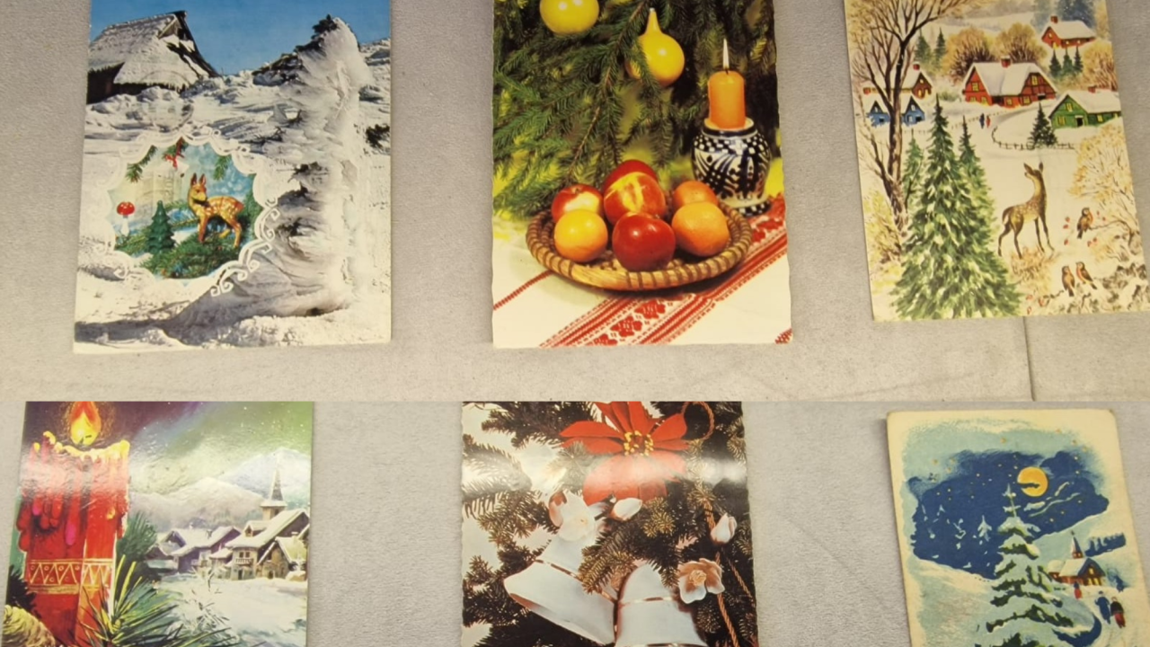 Na ogled so stare božične in novoletne voščilnice, ki so jih ljudje nekoč pošiljali sorodnikom, prijateljem in znancem.