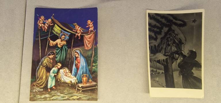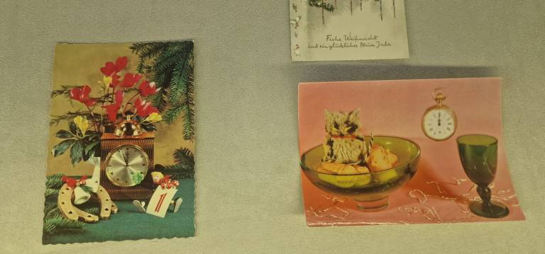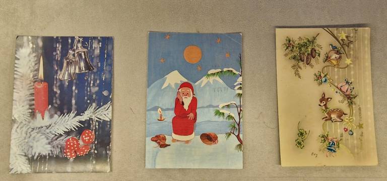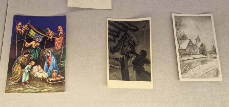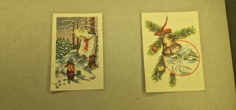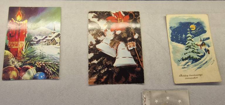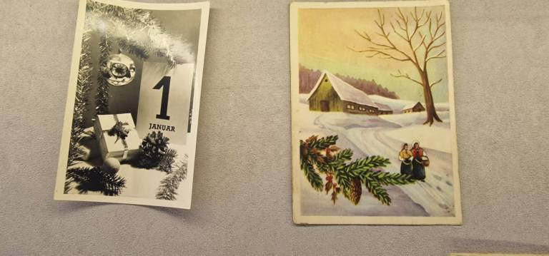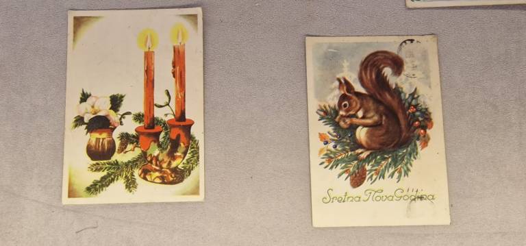 Na ogled so stare božične in novoletne voščilnice, ki obiskovalce popeljejo v praznično vzdušje preteklih desetletij.