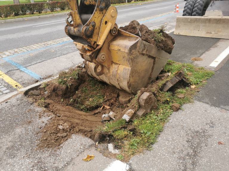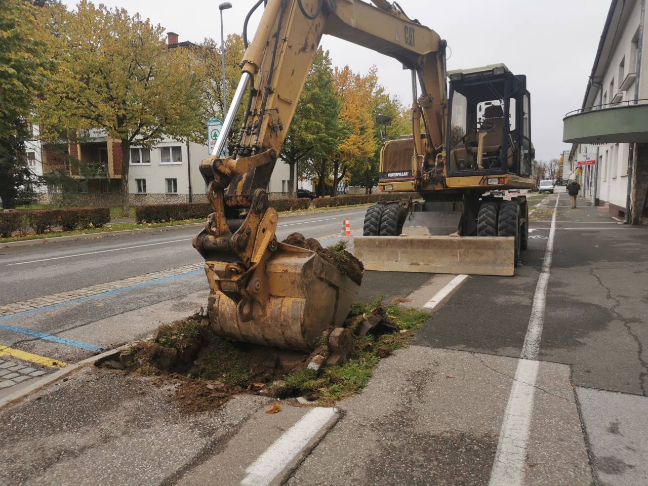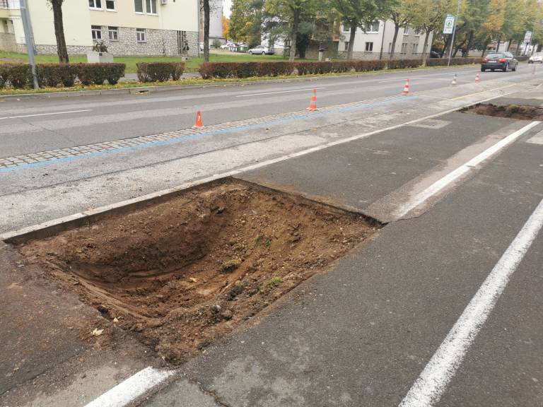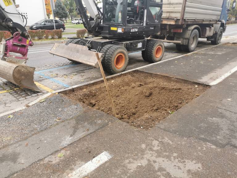 Podiranje dreves, natančneje kroglastih javorjev, na severni strani Ulice Štefana Kovača, od križišča s Kardoševo ulico do Gledališča Park, se je pričelo.