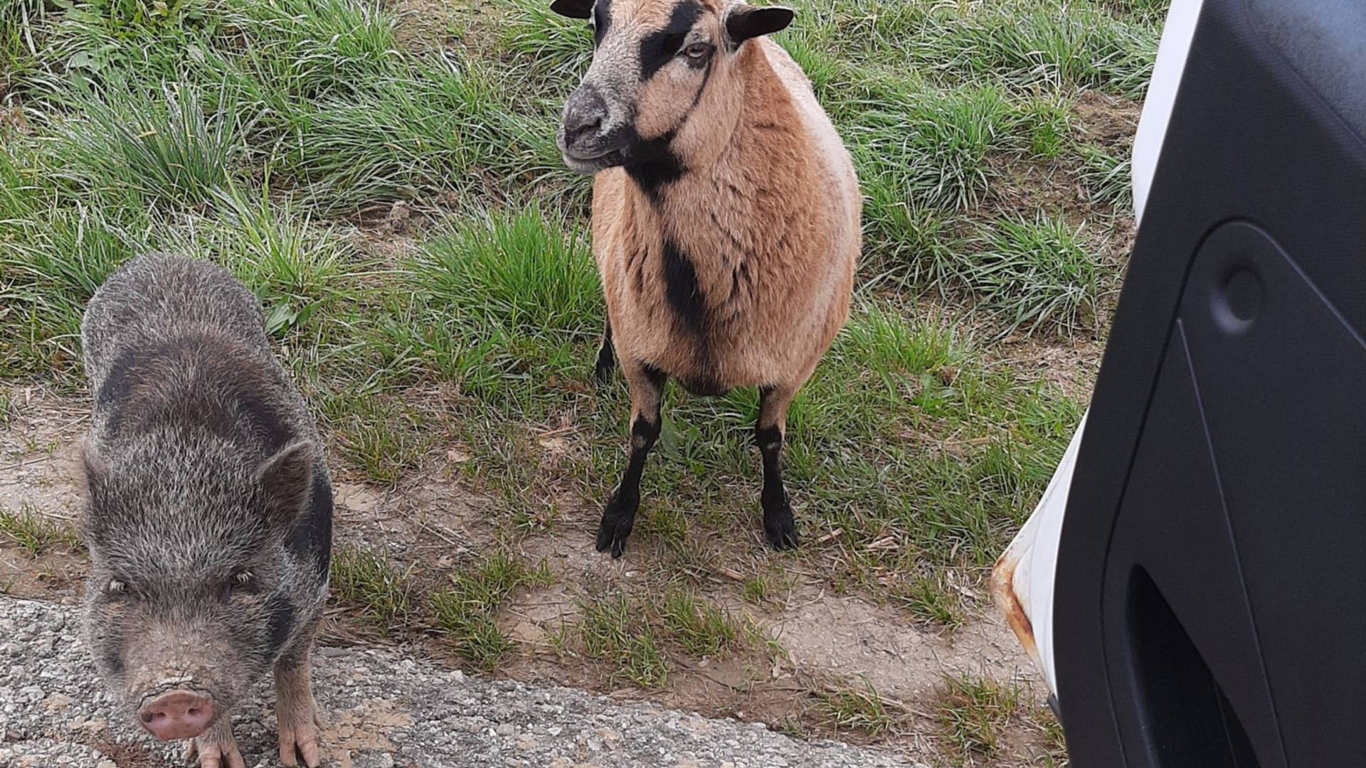 »Malo sta šla na sprehod,« je zapisal ob fotografiji koze in pujsa.