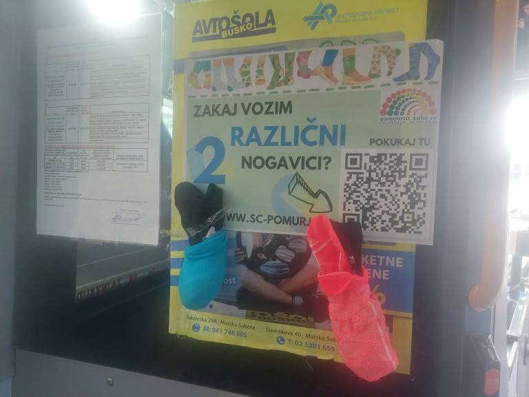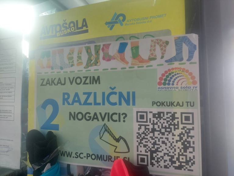 Danes so vozniki na avtobusih obesili dve različni nogavici skupaj z napisom »Zakaj vozim dve različni nogavici?« ter QR kodo, ki vodi do odgovorov na zastavljeno vprašanje.