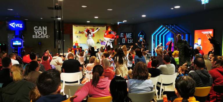 V WOOP! Murska Sobota je ob 17. uri prišel Jan iz priljubljene risane serije Super krila. V družbi Alenke Kolman je navdušil otroke: z njimi je zapel, naučil jih je novo pesmico, pokazal jim je čarovniške trike in se z njimi fotografiral.