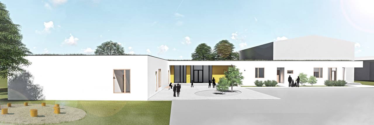Objekt bo zasnovan kot pritlična zgradba, sestavljena iz dveh traktov. Glavni vhod v objekt bo pod večjim nadstreškom, kjer bo lociran tudi prostor za hrambo vozičkov za otroke. Preko vetrolova bo tudi prehod na hodnik, iz katerega bo dosegljiv tudi skupni prostor.