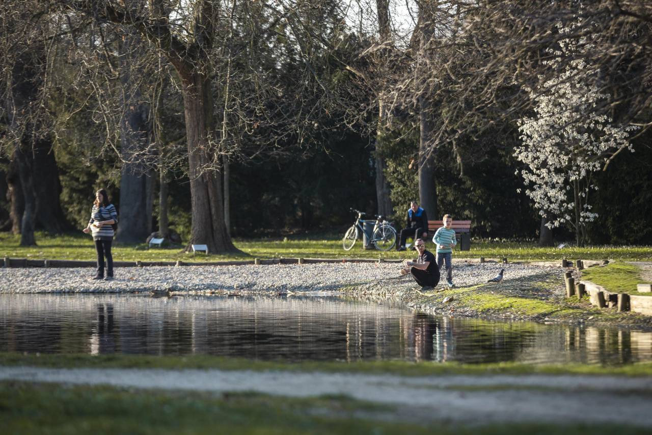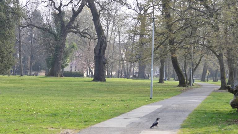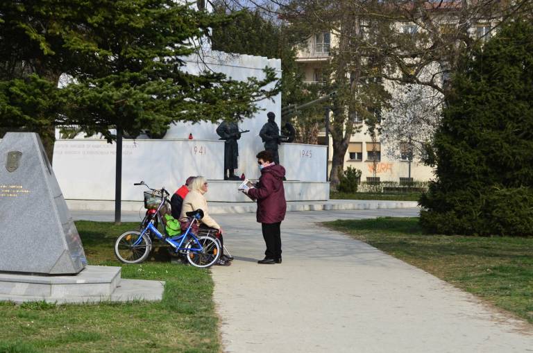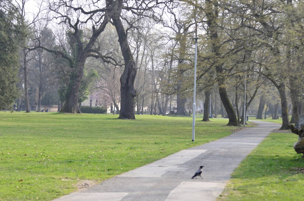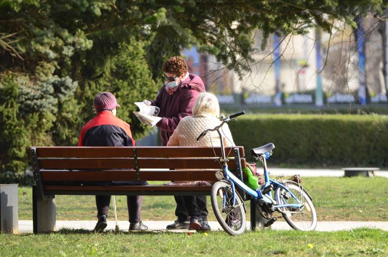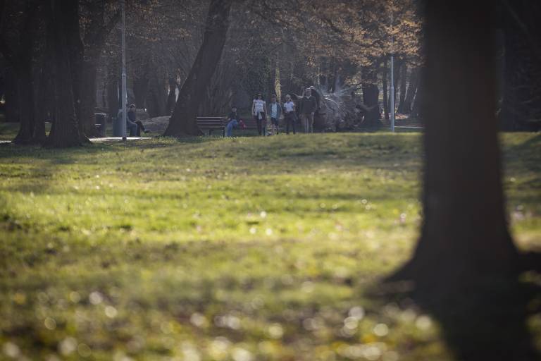 V parku ljudje klepetajo na tri metre razdalje.