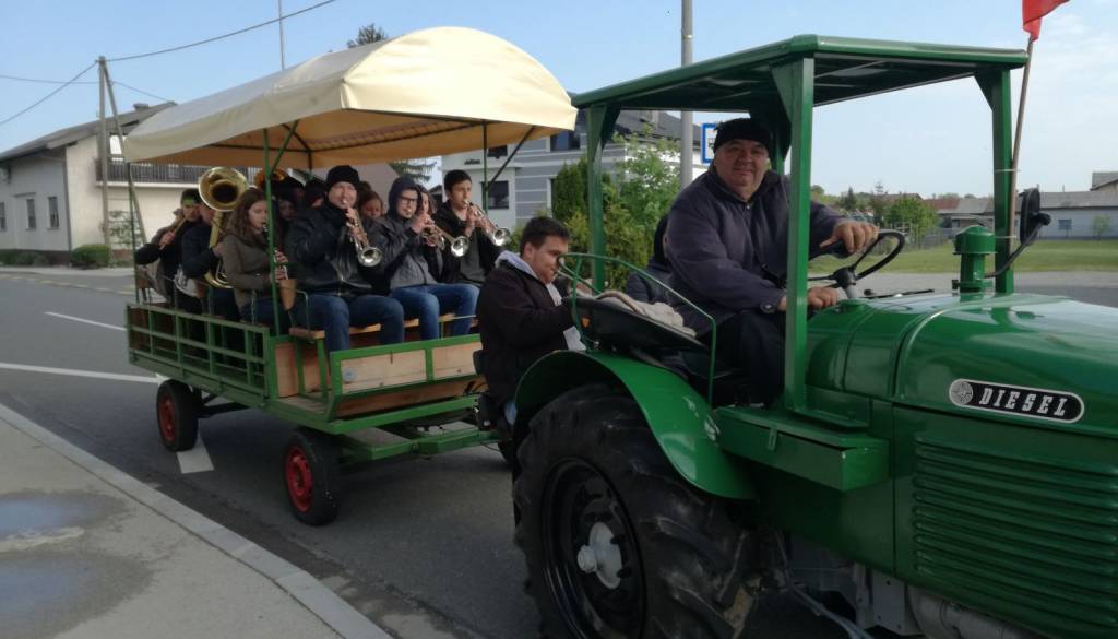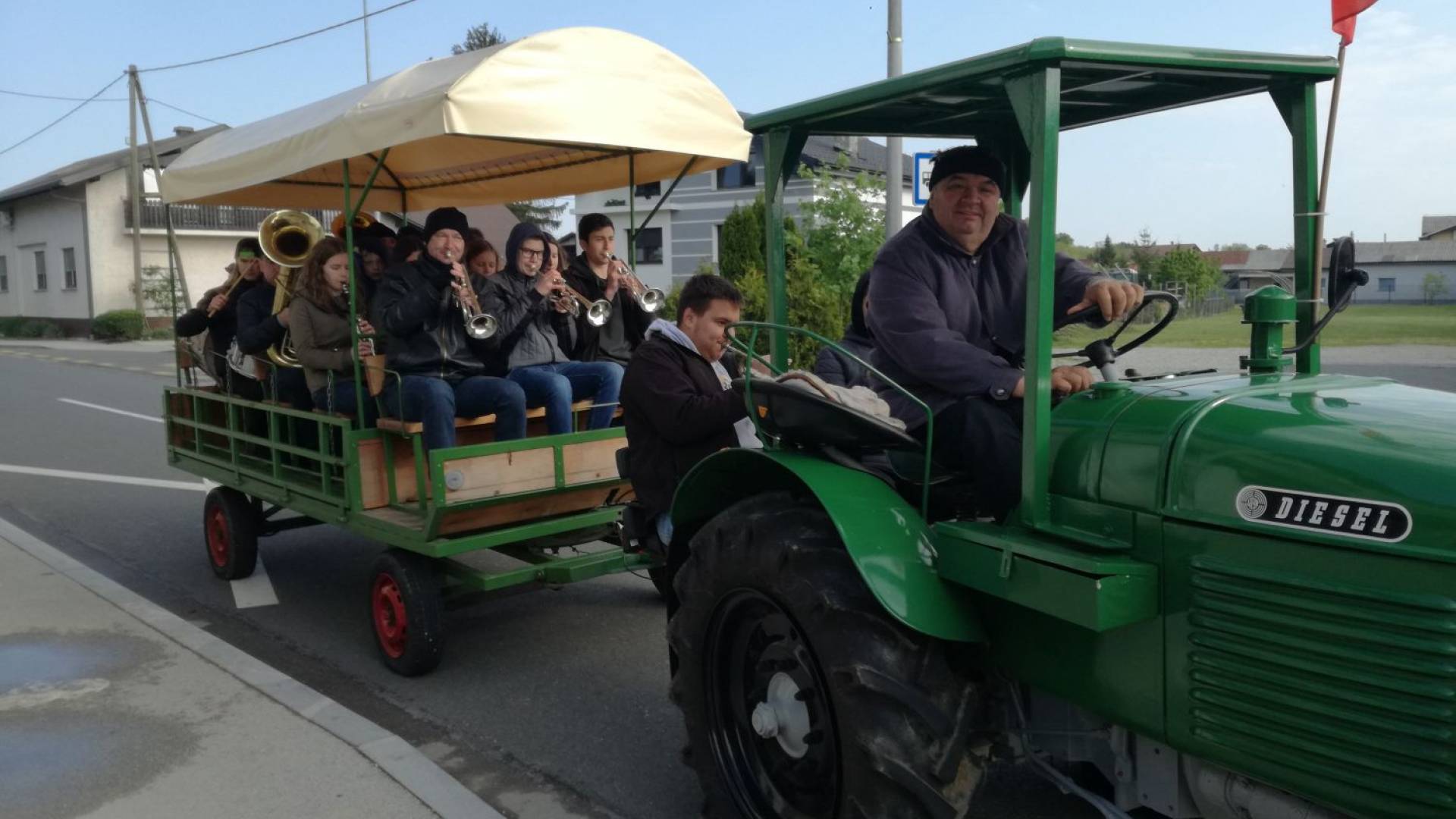 S starim lesenim vozom in starodobnim traktorjem jih je popeljal Ladislav Seči. Godbeniki so med potjo igrali prvomajske koračnice in slovenske narodne pesmi, primerne za priložnost.