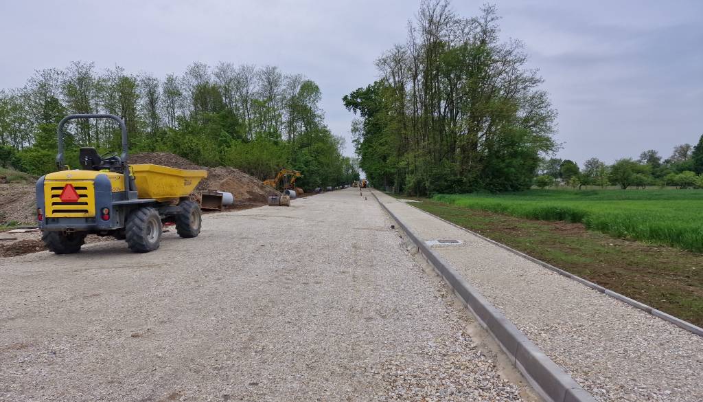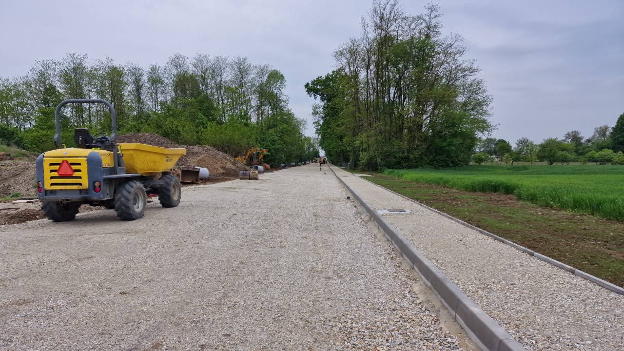 V mesecu marcu so se zaključila vsa predvidena pripravljalna dela. Takoj zatem se je začelo polaganje cestnih in vrtnih robnikov pločnika ter sukcesivno vgrajevanje tampona v cesto.