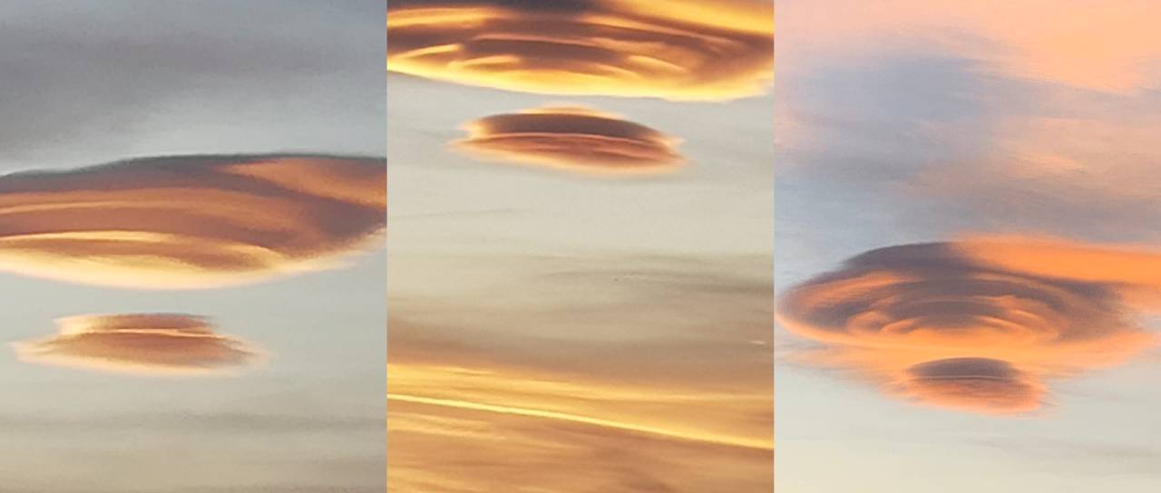 Šlo je za tako imenovane lečaste oblake, ki nastanejo zaradi zračnega toka, ki teče v nasprotne smeri in zaporedni valovi zračnih mas, ki udarijo ob gore tako ustvarijo večplastno obliko oblakov, ki spominja na obliko krožnikov.