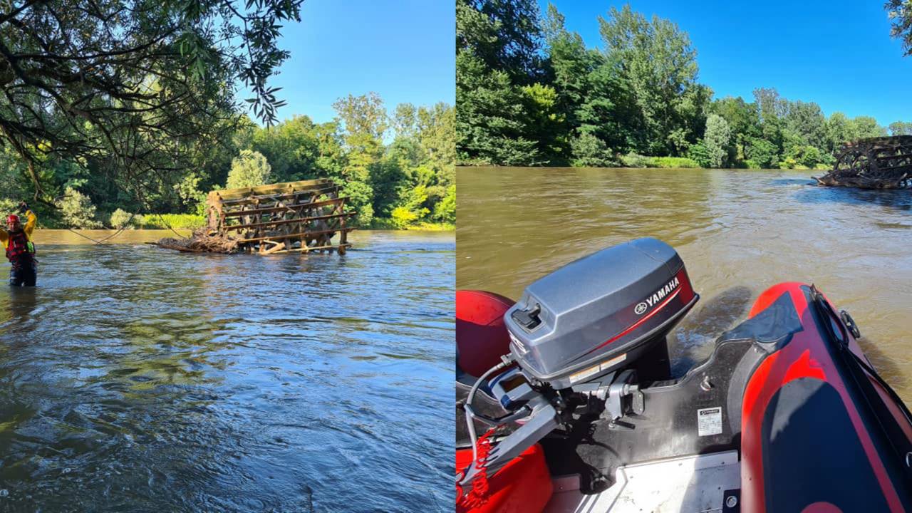Včeraj so potapljači Slovenske potapljaške zveze, gasilci PGD Radgona in PGD Ižakovci zavarovali kolo, ki ga je odnesla voda. Pravijo, da je škoda velika.