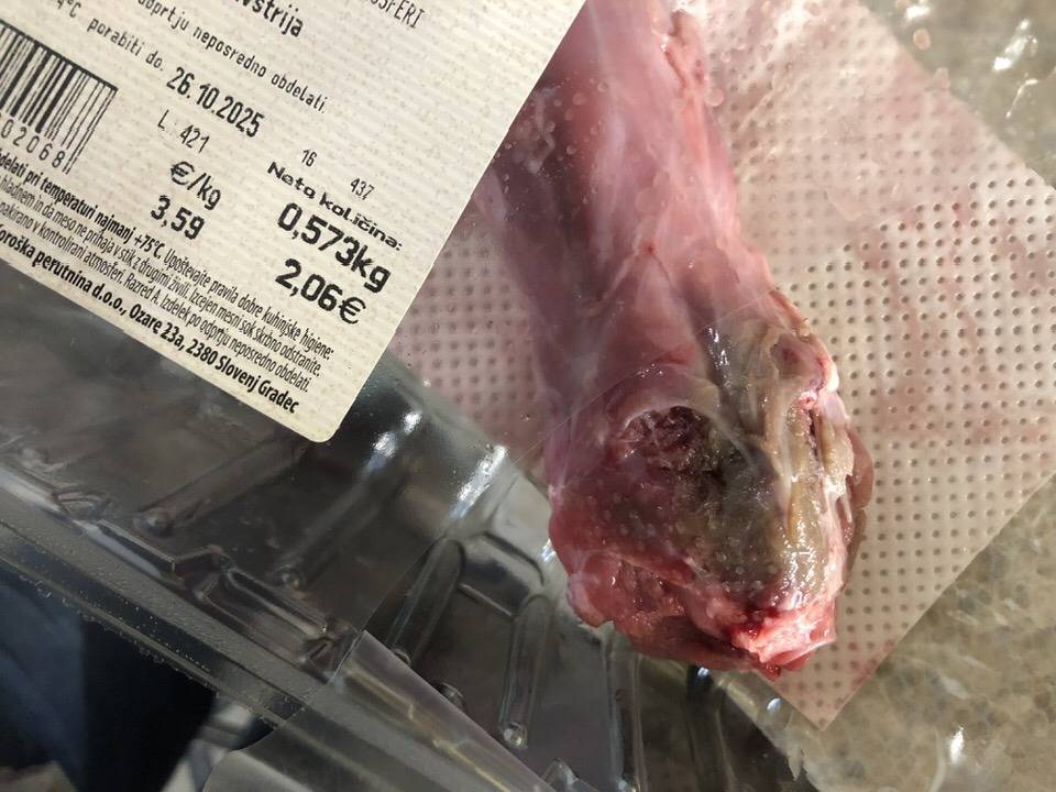 »Danes v Eurospinu. Se mi je pa to zgodilo že večkrat, da je bil en del mesa siv.«