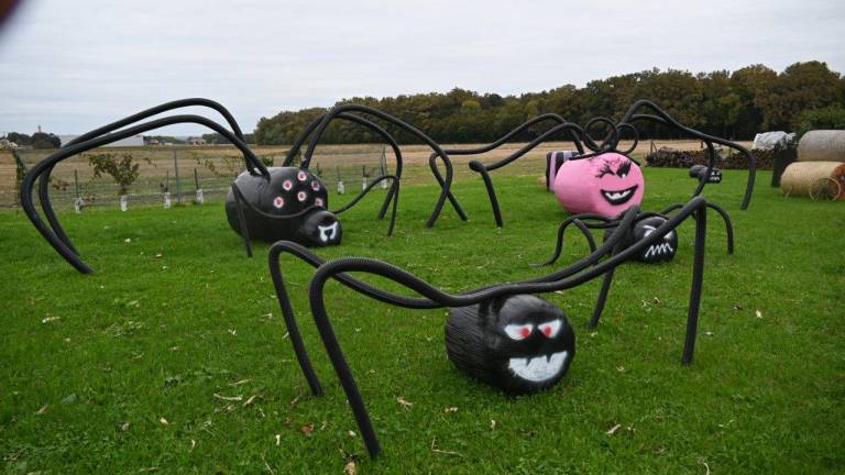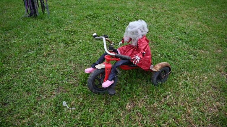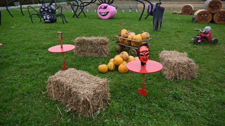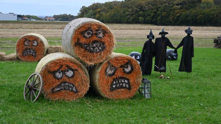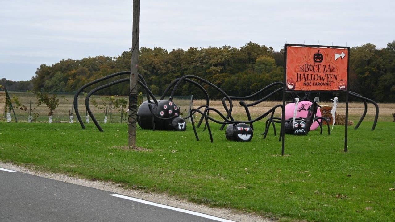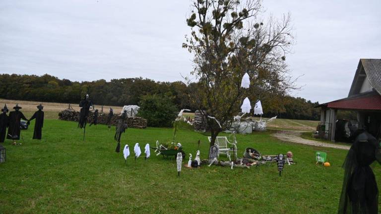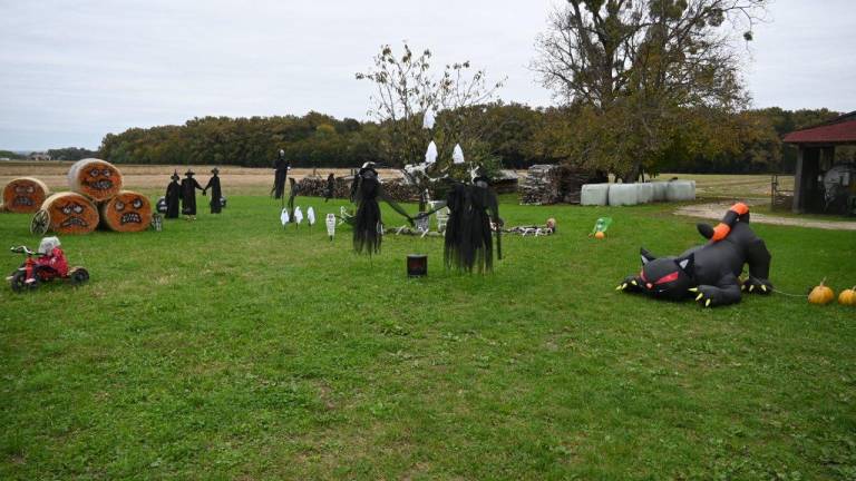 Na obsežnem dvorišču in na trati v okolici hiše ter ob gospodarskih poslopjih pa so za praznik čarovnic razstavili tudi različne strašljive like.