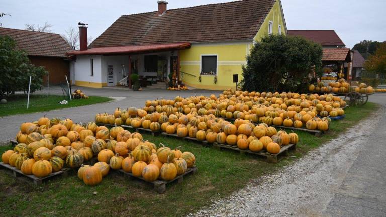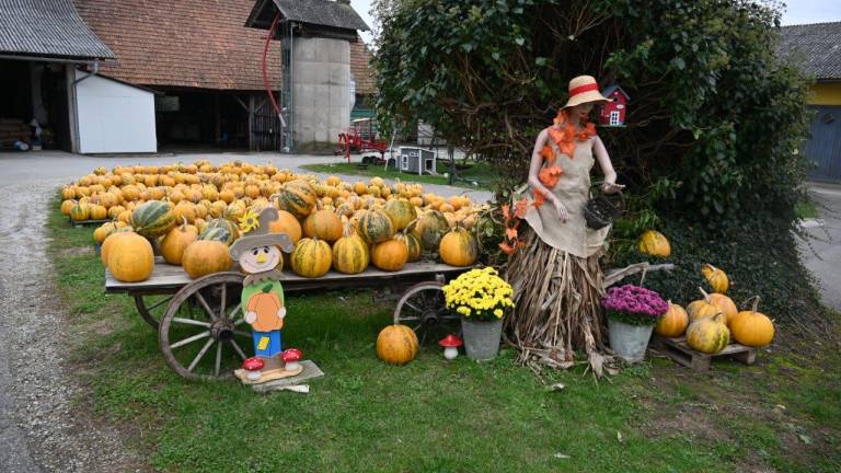 Kmetijo v Črešnjevcih krasi razstava buč za noč čarovnic.