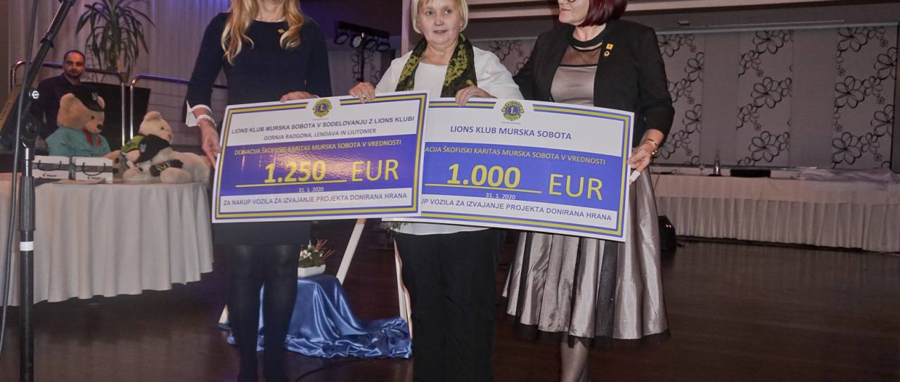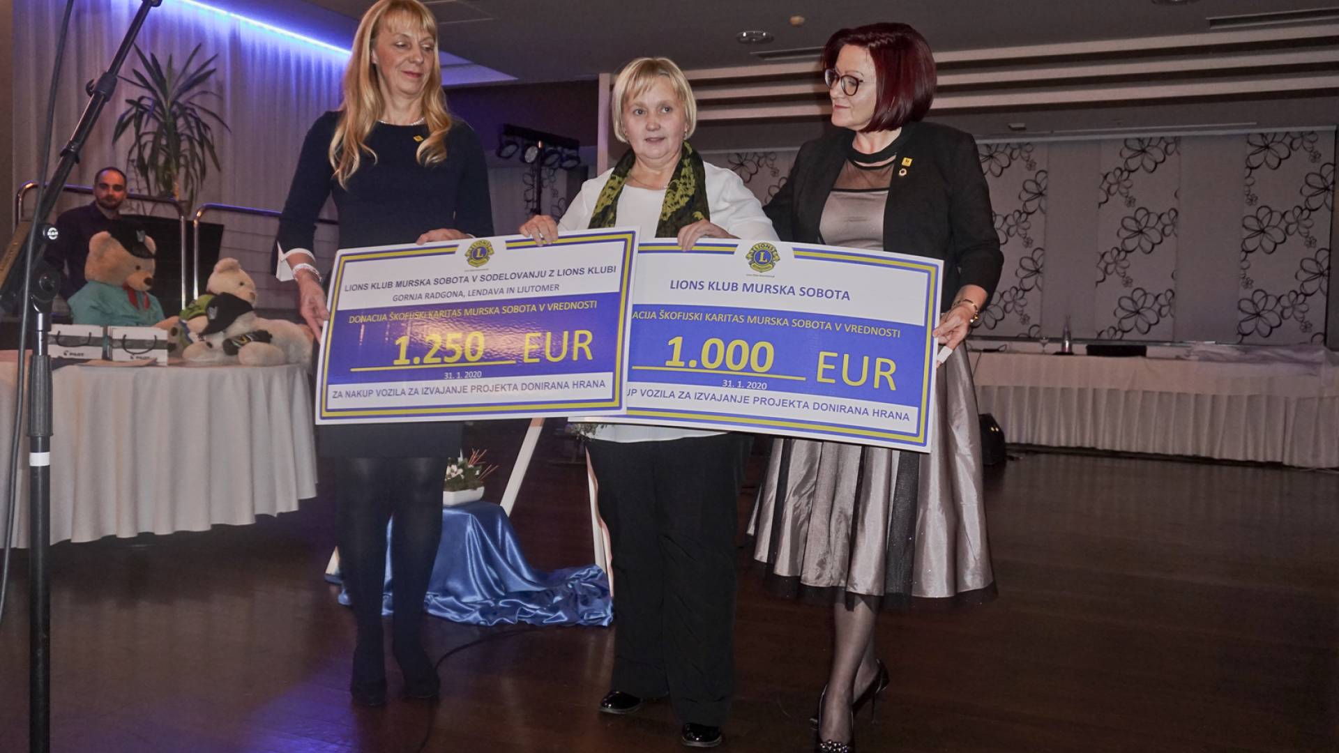 Za nakup vozila za prevoz donirane hrane do ranljivih skupin so tako namenili dva donacijska bona v skupni višini 2.250 evrov. Gre za zbrana sredstva iz božično novoletnega koncerta Lk Murska Sobota v višini 1.000 evrov in zbrane dobrodelne prispevke iz samega dogodka ob obletnici delovanja pomurskih klubov v višini 1.250 evrov.