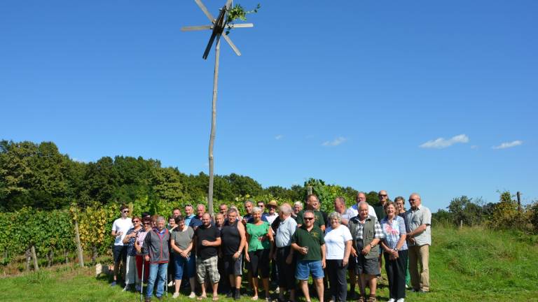 Po postavitvi klopotca so pod njim nazdravili z vinom, ki so ga pridelali vrli domači vinogradniki, nato pa je sledilo druženje ob dobri pijači in jedači.