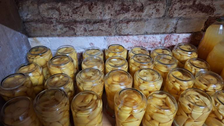 V skrbno pripravljeni ozimnici se čuti večmesečno delo na vrtu in v sadovnjaku, ki se izraža v vsaki izmed steklenic vloženih in za zimski čas shranjenih pridelkov.